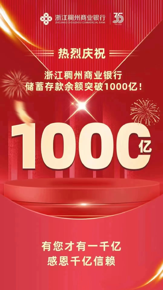 日前,浙江稠州商业银行储蓄存款余额突破1000亿元大关。浙江稠州商业银行初创于1987 年,注册地在全球最大的小商品集散中心义乌,经过35年的发展,已成为一家机构遍布全国9省(直辖市)、营业网点251个、员工人数超6000人、资产规模超2800亿、跻身全球银行500强第360位的现代化股份制商业银行。