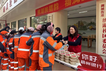 绣湖映腊韵,福满腊八时。稠州银行义乌广场支行联动绣湖社区,为可爱的城市守护者们送出“腊八温暖”。递一碗冬日腊八粥,该行工作人员向环卫工人们致以诚挚的敬意和节日的问候。